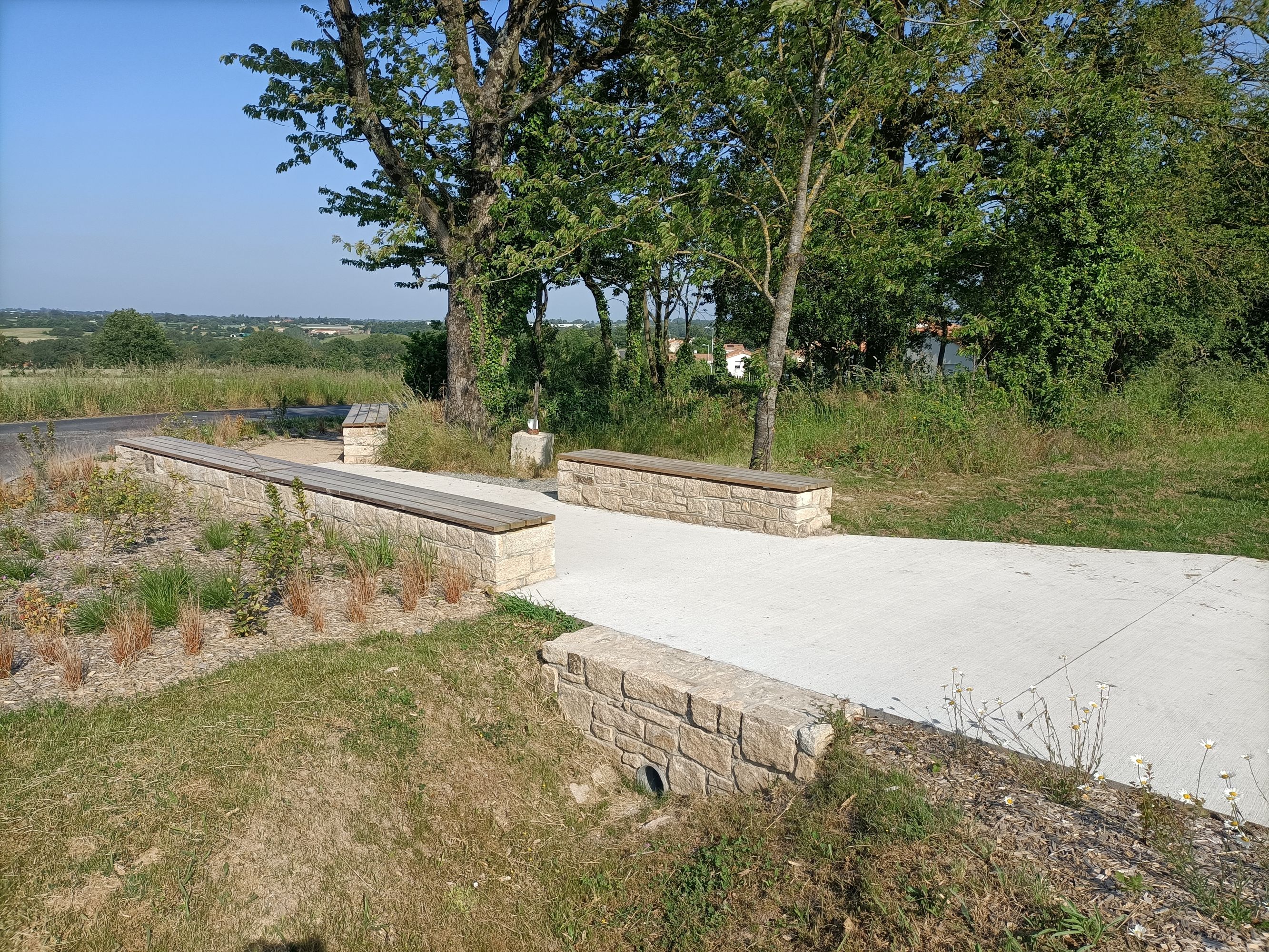 Cette deuxième phase a comporté un volet paysagé important, avec notamment : la création d’un bassin d’orage et de noues pour la gestion des eaux pluviales, ainsi que des murs en pierre naturelle, qui se fondent dans dans le patrimoine architectural de la commune.